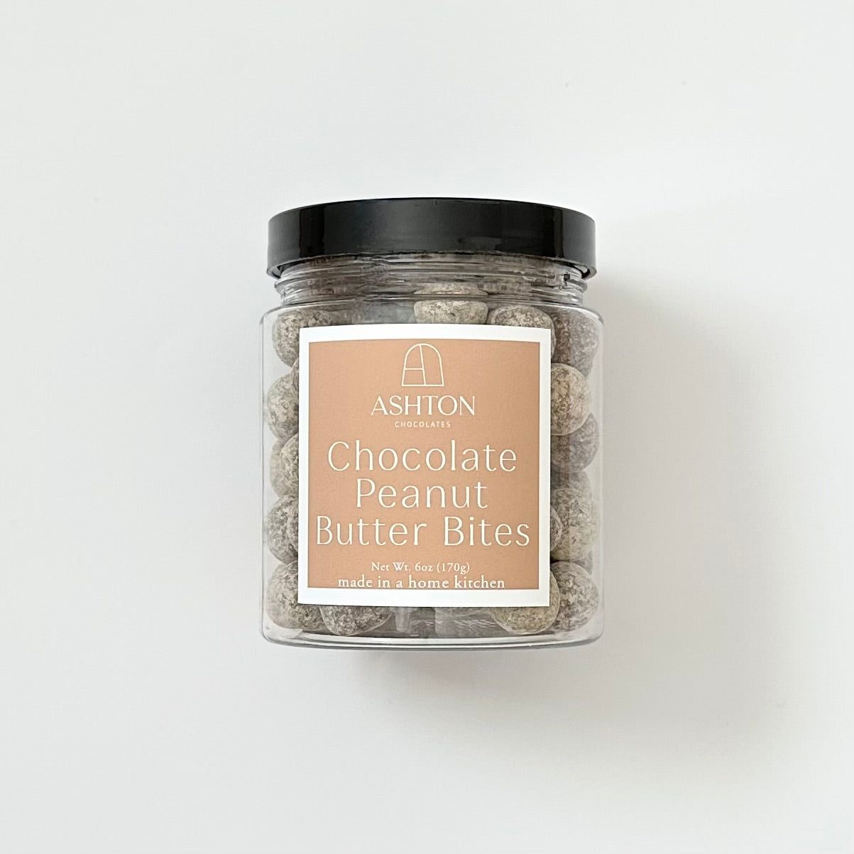 Light and airy organic peanut butter puffs coated in milk chocolate and dusted with dried peanut butter powder.